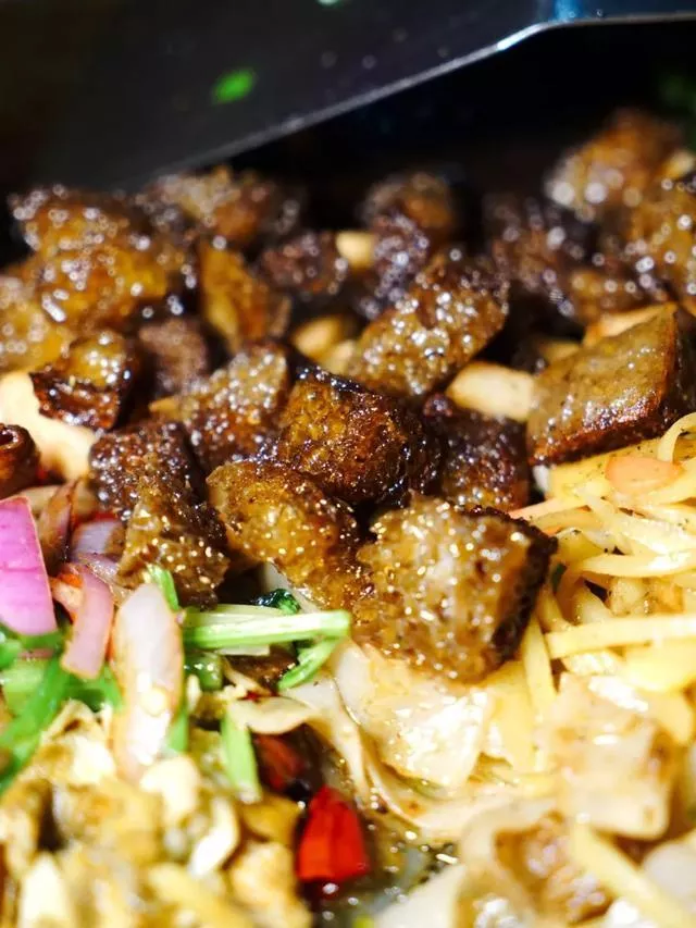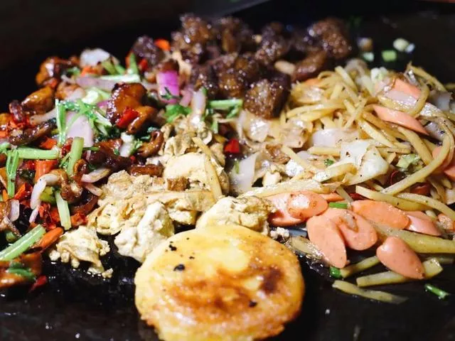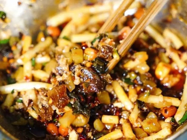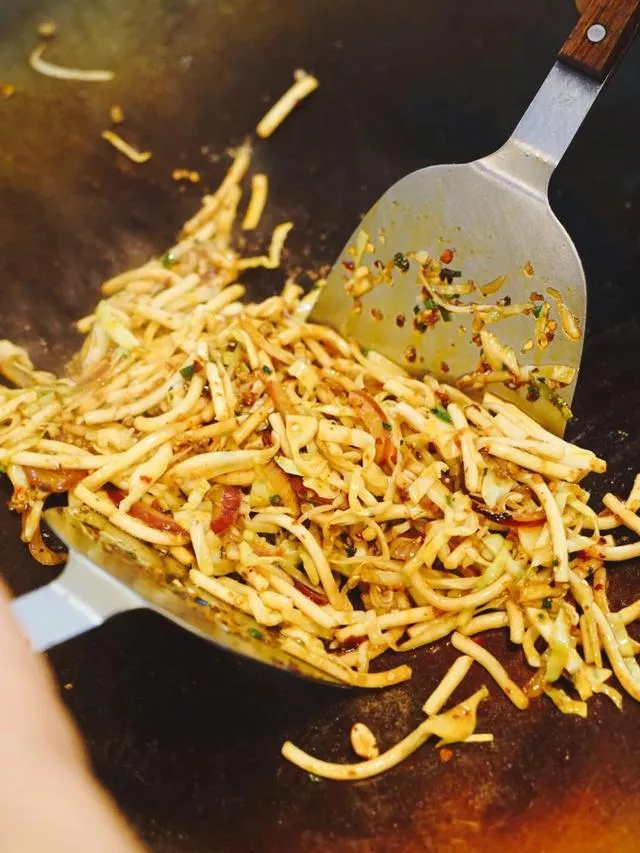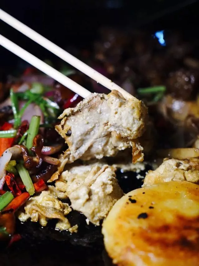 小河洋芋絲里和普通烙鍋不同的是必須有苕粉、蓮花白,最重要的是辣椒里要放甜醬,如果你從來沒吃過我建議你一定要來試試。除了每桌必點的洋芋絲、洋芋粑、臭豆腐,我還很喜歡凍魔芋,老板會提前放甜醬炒好,所以一口咬下去會有爆汁的感覺