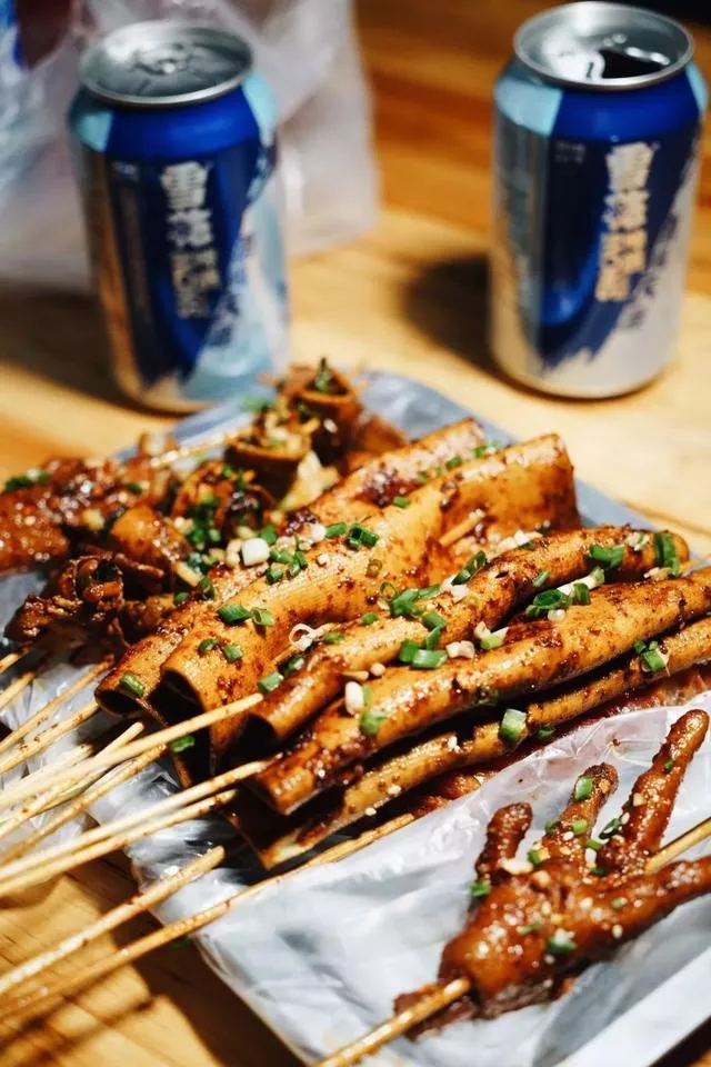 莽叔叔家燒烤是先油炸再烤制,最后刷上自己調制的秘密醬料,吃起來有小時候吃到的那種醬香和煙熏味,是現在很多燒烤都沒有的味道。強烈建議要嘗豆腐皮,里面裹著折耳根香蔥簡直無敵!每次我一個人都可以吃四五塊。肉串也要嘗,每天都賣完所以沒有隔夜肉,但是和豆腐皮一樣必須烤好馬上吃,打包走味道就會失色不少