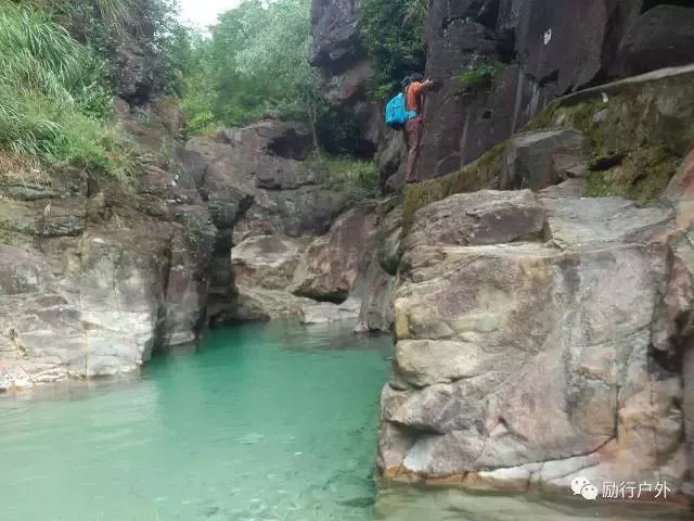 攀爬過后,考慮到其他隊(duì)友攀爬能力比較一般,如果他們同樣攀爬巖壁過去,存在很大的危險(xiǎn)系數(shù),而自己雖然能夠攀爬,如果不下水的話其他人還是想嘗試。戶外是就必須安全最大化,決定濕身,把人帶過來。