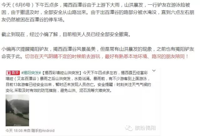 山洪暴發(fā)圖片為2015年。有些錯(cuò)誤,大自然不一定給機(jī)會(huì)你改過。這就是為什么溯溪我只帶三五個(gè)人,絕不帶多,也許,有些俱樂部打著多年戶外經(jīng)驗(yàn),打著AA出行,風(fēng)險(xiǎn)自負(fù),簽訂風(fēng)險(xiǎn)責(zé)任書,實(shí)則牟利。我只能說,萬一發(fā)生事故,即使你能逃過法律的制裁,但是你能一輩子面對(duì)良心的拷問嗎?