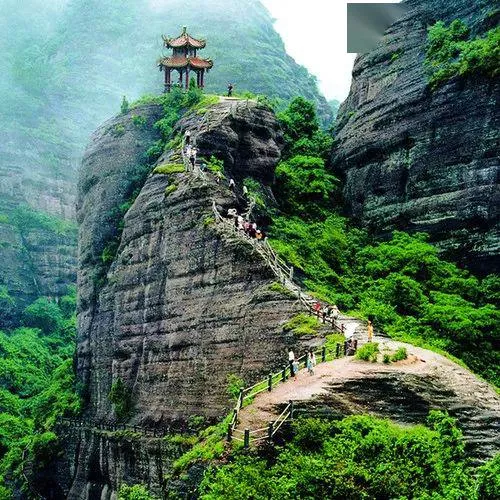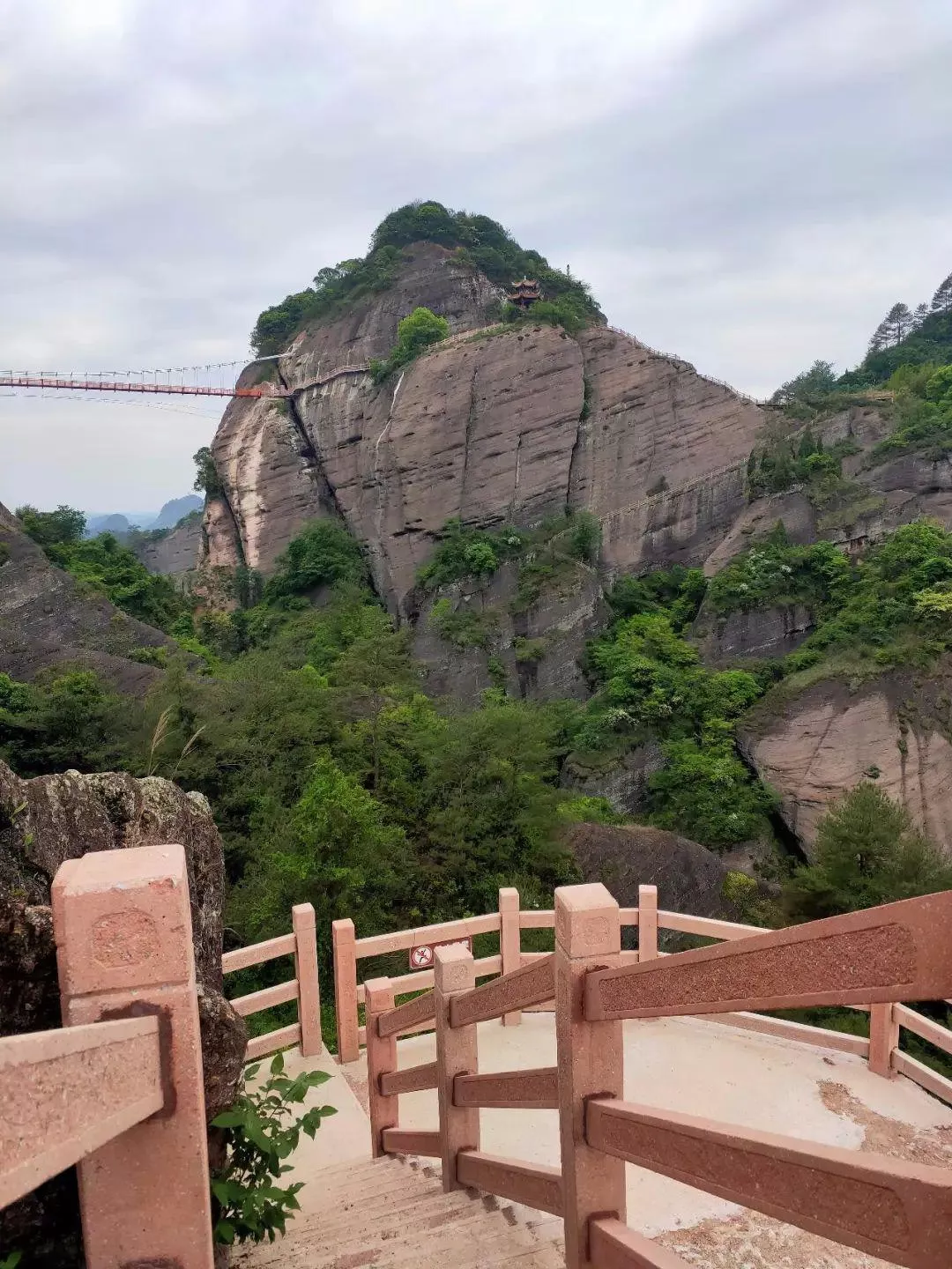長壽亭出發(fā)→經(jīng)過索橋→生命之根觀景臺→冠豸山索道→竹安寨天池→玻璃棧道→竹安寨