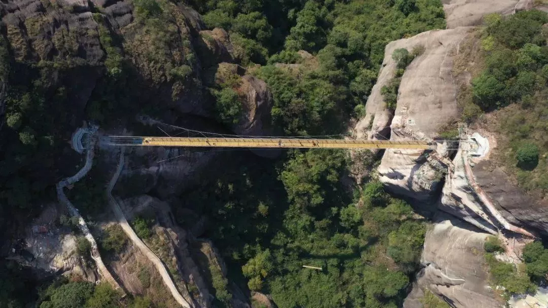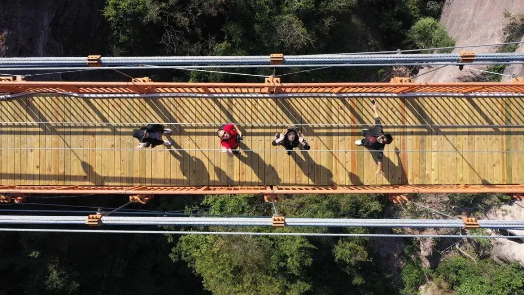 沿自然山體順勢而建的高空中的索橋,連接著長壽亭后與對山的道路。開辟了一條與眾不同的游覽冠豸山的游覽路線,站在橋上,俯覽橋下山谷風(fēng)光美景,別有一番趣味性和刺激性。