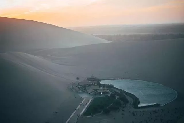 其中,月牙泉被鳴沙山環(huán)抱,因形狀如一彎新月而得名,月牙泉的源頭是黨河,它如同沙漠中的一片綠洲,周邊還有亭榭樓臺(tái),傲立在四面黃沙之中,自有一番柔情風(fēng)味。