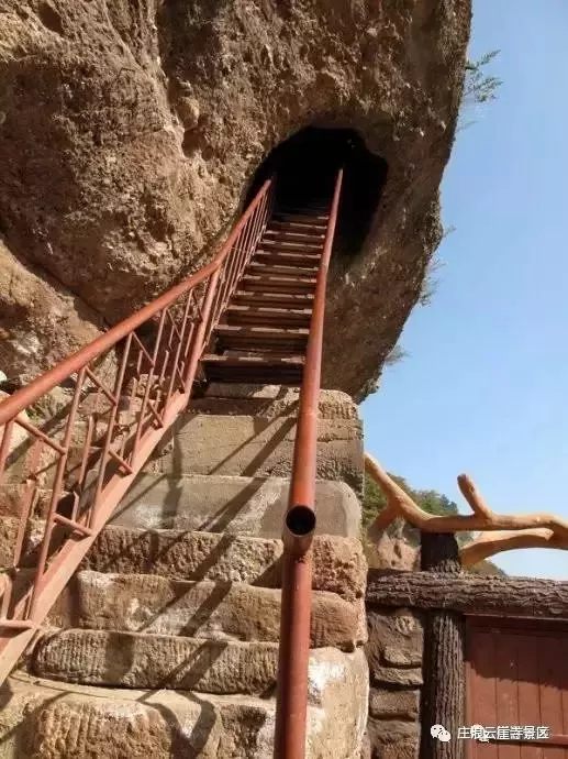 第二層到第三層幾乎垂直的距離分布,沒有以前留下的石階,要想登臨,必須經(jīng)過人工搭建的簡易鐵梯才可,每次只能一人通過,當爬上第三層時,仿佛是從幽深的井底來到了地面。