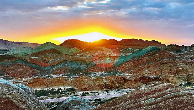 張掖丹霞地貌分布很廣,方圓100平方公里的山地丘陵,造型奇特,色彩斑斕。有“千山波濤涌,百里丹霞紅”的壯觀。