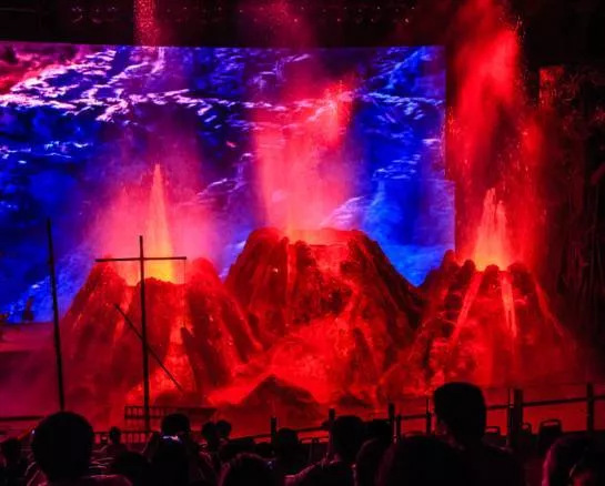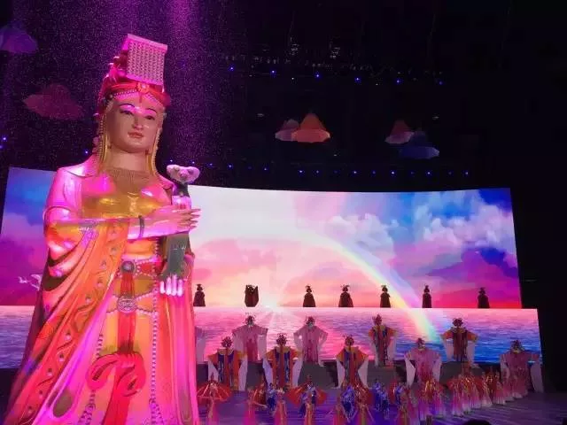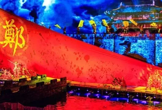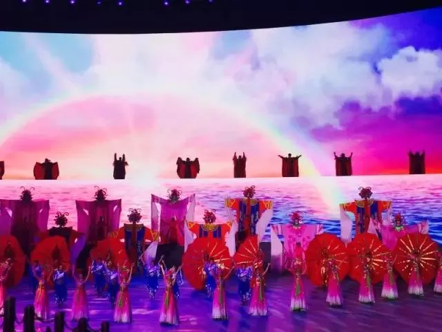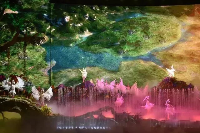 載歌載舞,玄幻夢幻,2000噸水從天而降,泛起滔天巨浪,營造"黃河之水天上來"的磅礴氣勢,17米高的巨型金龍騰空而起,撇下甘霖,福澤萬民