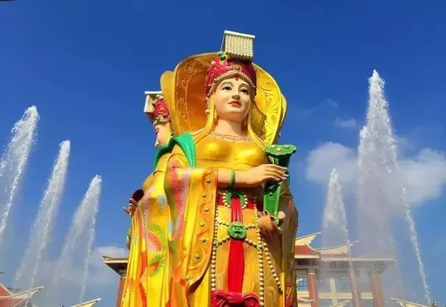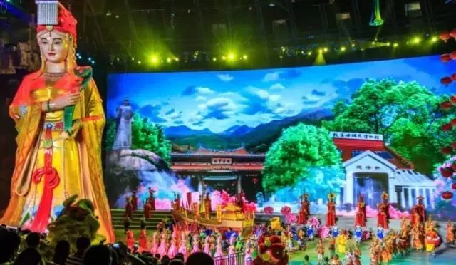 惠安女款款走來,一場閩南天香踩街民俗活動將表演帶到高潮,18米高的媽祖像從水下升騰,觀眾激動不已,情不自禁膜拜