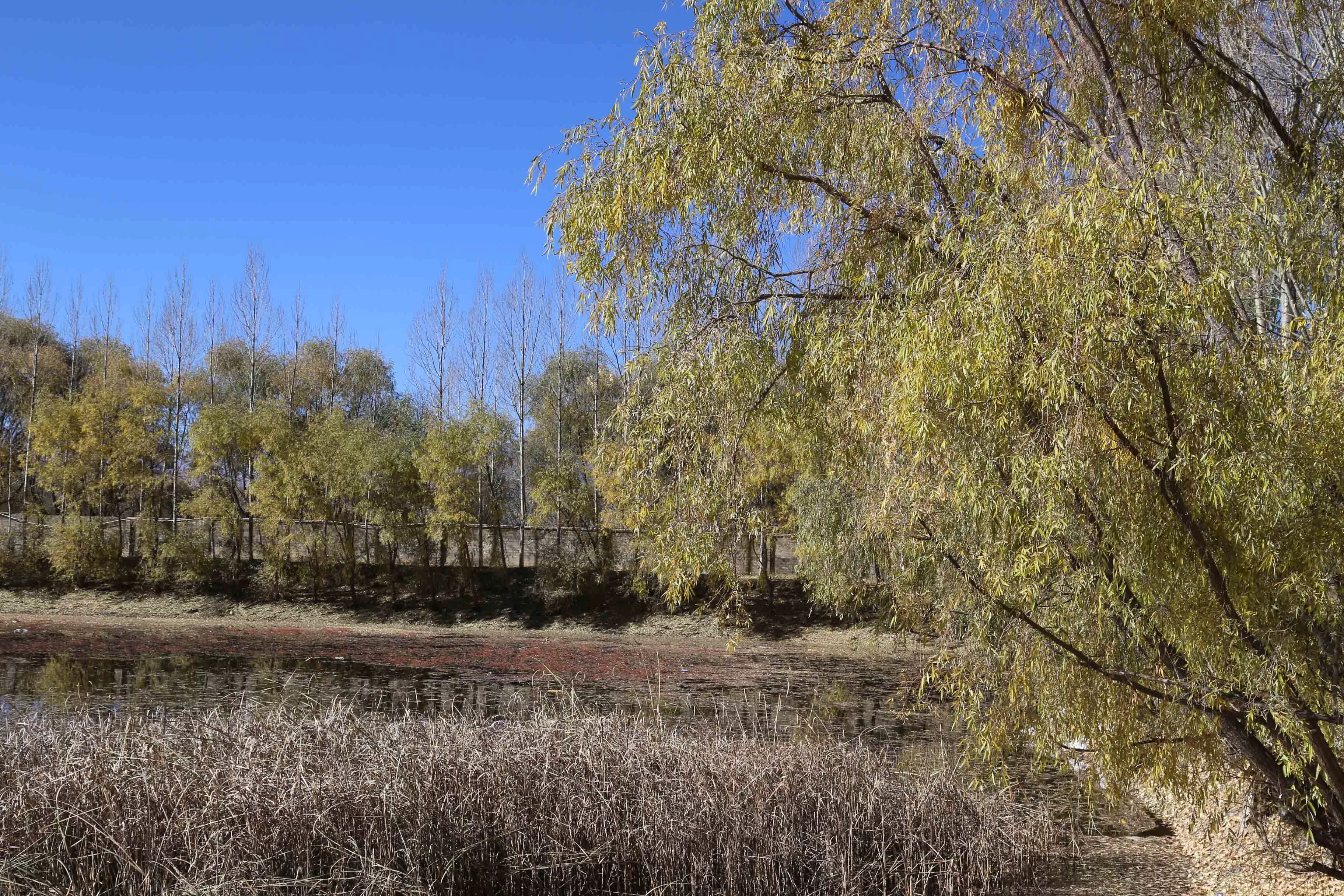 曲水縣某地的魚塘,四周柳樹葉全部發(fā)黃,在微風的吹拂下,婆娑多姿。美中不足的是魚塘里沒有魚,如有魚便可垂釣的同時欣賞景色。