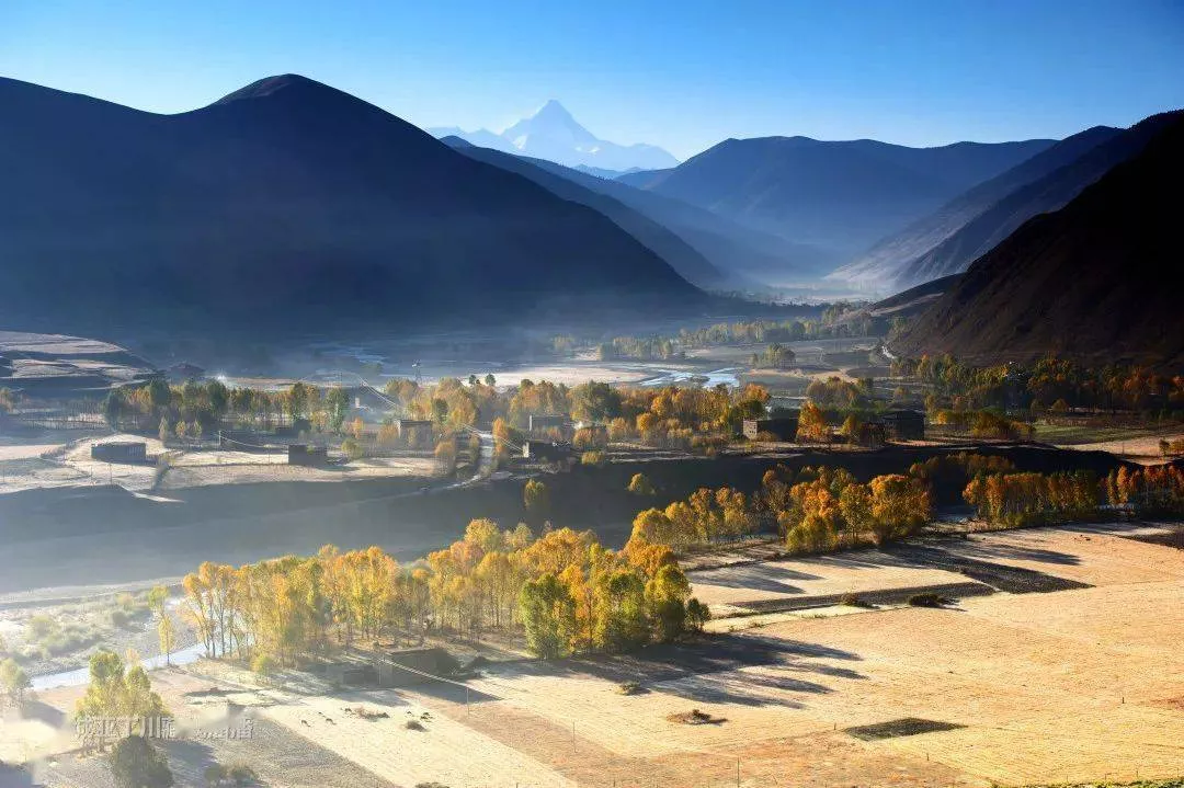 這里風光秀麗,光彩照人。有無垠的草原,彎彎曲曲的溪流,金色的柏楊,連綿起伏的山巒,錯落有致的藏寨,星星點點的牛羊。