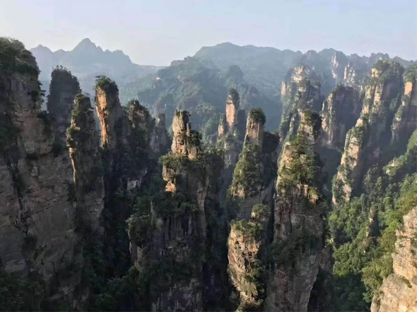 【上午】游覽楊家界、金雞報曉、烏龍寨、三道鬼門關(guān)、天波府、天子山、賀龍公園、云青巖、西海大峰林、御筆峰、仙女散花、可乘索道下,也可以從天子閣臥龍嶺下山到十里畫廊