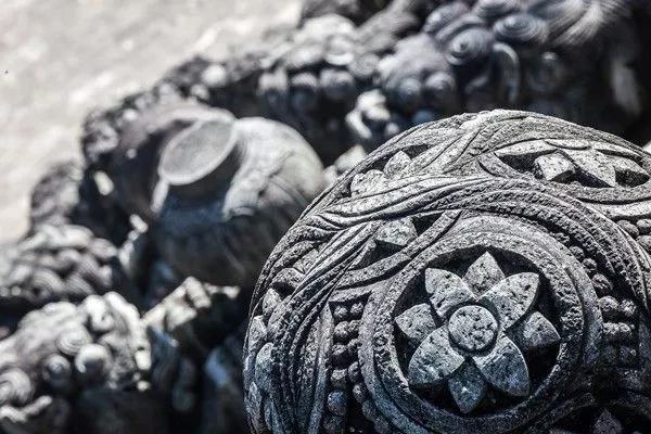 從“憩亭”往東邊所看到大石壁上氣勢宏偉的群獅雕刻,就是千獅山的千獅壁。石壁中間的這個圓形構圖,其創(chuàng)意來源于繡球,其中9個獅子頭代表東漢以來9個朝代獅子的不同風格,象征獅子在中國發(fā)展的歷程。千獅壁還沒有雕完,完工之時將有一千只石獅子在巨大的石壁上共舞,那時該是多么壯觀的場面。