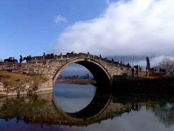 迎仙橋是進入千獅山勝景之前的一座石拱小橋。小橋橫跨池塘,碧波蕩漾,猶如“仙橋”,寓意:過了這座橋,來此游覽之人都成了“神仙”,是來神游。池塘邊雕刻有活靈活現(xiàn)的飲水母子獅,池塘里沉睡著千年神龜。小橋與潺潺的泉水構成了“小橋流水”的別樣景致。