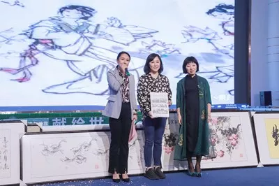 中國齊白石藝術(shù)交流培訓(xùn)基地負責(zé)人吳波女士為吉林省女?dāng)z影家協(xié)會副主席蔡黎楓女士贈禮!