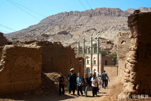 吐峪溝麻扎村位于吐峪溝大峽谷南溝谷,是新疆最古老的維吾爾族村落。它分布在綠塔聳立的清真大寺四周,距今已有2600多年的歷史,是古車師(師姑)國的發(fā)源地。堪稱中國的第一大伊斯蘭教圣地,即“中國的麥加”。按當(dāng)?shù)啬滤沽值恼f法,到麥加朝圣前一定要先到吐峪溝麻扎?,F(xiàn)在村中約有百十戶人家。 370多位村民,都是維吾爾族,保持著最傳統(tǒng)的維族風(fēng)貌和生活習(xí)慣。在麻扎村內(nèi)保存有大量維吾爾民族的傳統(tǒng)民居,全是黃黏土生土建筑,均是土木結(jié)構(gòu)。麻扎村的先民根據(jù)當(dāng)?shù)氐淖匀画h(huán)境和生存需要,就地取材,因地制宜,充分、巧妙地利用黃黏土造房,集生土建筑之大成,是至今國內(nèi)一座保存完好的生土建筑群,號稱“中國第一土莊”。完整地保留了古老的維吾爾族傳統(tǒng)和民俗風(fēng)情。人們日出而作,日落而息,使用維吾爾語交際,信仰伊斯蘭教,穿著最具民族特色的服飾,走親訪友的主要交通工具依然是古典式的驢車代步。