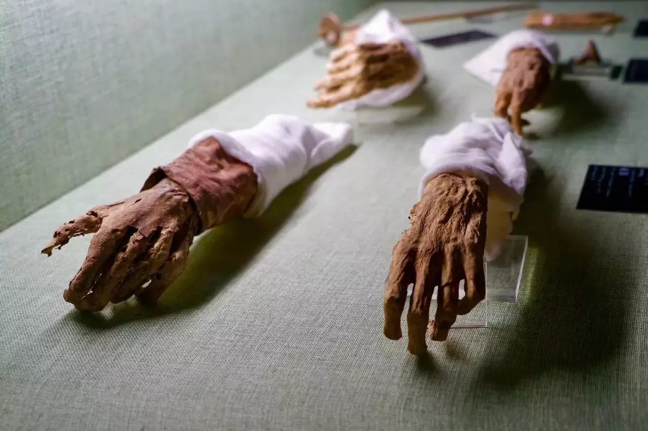 博物館展廳分為出土文物陳列廳、古尸陳列廳和巨犀化石廳三部分。其中吐魯番地區(qū)出土古尸陳列廳是最具神秘性和吸引力的展廳。這里展出的11具干尸,從春秋戰(zhàn)國時期至清代時期的古尸,主要出自阿斯塔那—哈拉和卓墓葬群和蘇巴什古墓群、洋海古墓群等。巨犀化石陳列廳內(nèi)的巨犀化石是吐魯番博物館的鎮(zhèn)館之寶。據(jù)考證,這是目前世界上出土最完整的一具巨犀骨架化石。