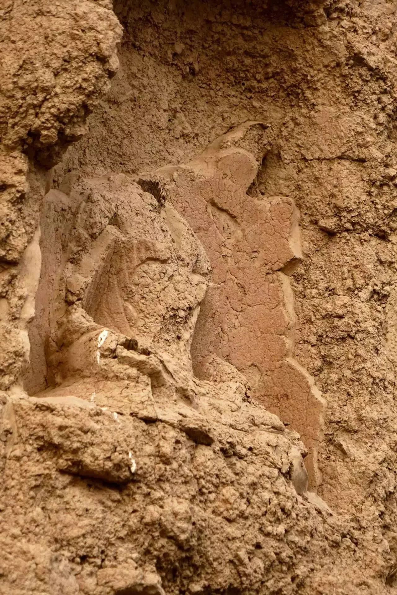 吐峪溝千佛洞位于鄯善縣城西約40公里的吐峪溝鄉(xiāng)吐峪溝內(nèi),西距高昌故城約13公里。古稱“丁谷寺”,是吐魯番地區(qū)建窟較早、保存早期壁畫較多的石窟。最早的洞窟出現(xiàn)在晉、十六國時期。沮渠氏家族稱王時(公元443~ 450年),是吐峪溝佛教最繁榮的時期。這里共有94個洞窟,現(xiàn)存45個,溝東 21個,溝西24個。由于帝國主義的掠奪和人為的破壞,吐峪溝壁畫90%吡以上已經(jīng)毀圮無存。如今只有8個洞窟還殘留少量有回鶻文題記的壁畫。其中1、2、3、4號窟,佛坐胡床,為全國所僅見。這里還出土過一些佛經(jīng)殘卷。