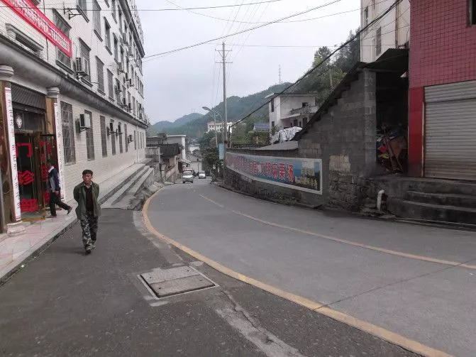 鎮(zhèn)中心衛(wèi)生院在坡下的拐角處,三層樓房墻面貼了馬賽克,有一個不小的院子,想來是新建的,可惜底層被移用做了商店。敬老院就在另一條小路邊,嶄新的墻面勾縫筆挺,恐怕也是近幾年的建筑,門口停了一輛越野。國道邊都是新建筑,大概是當(dāng)?shù)厝说淖》?,開著旅館飯店。這里應(yīng)該是苗族人的聚居區(qū),但看不到一個苗家裝束的人,也沒有一座苗寨。
