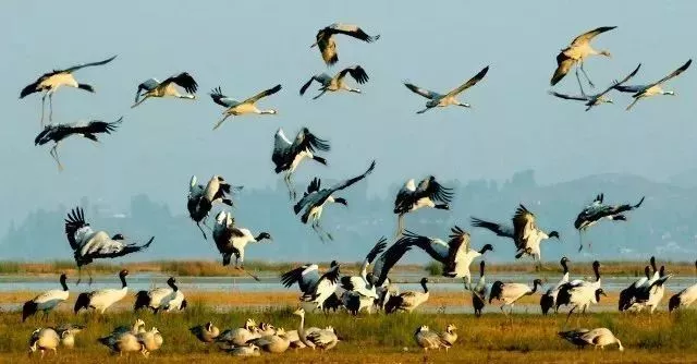 黑頸鶴通常每年10月末、11月初開始飛回草海越冬,次年3月末、4月初陸續(xù)北遷。