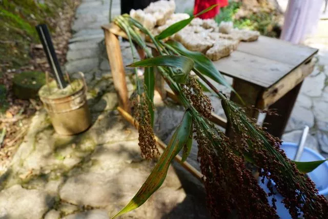 一般景區(qū)通常賣的是橘子、玉米之類的,可這里賣的水果有些奇怪,青色帶葉長長的桿子,頂端有些黃穗子,還真沒見過。問了問同伴,說這是高粱桿,我恍然大悟,不就是小時候扎掃帚用的東西嗎,這也能吃?