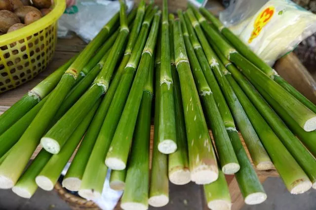 一問價格,剁好的5塊錢三小截,經(jīng)過一番討價還價,1塊錢一小截成交。迫不及待地嘗了嘗,和甘蔗味道差不多,水分較足也挺甜,就是皮有些不太好咬。