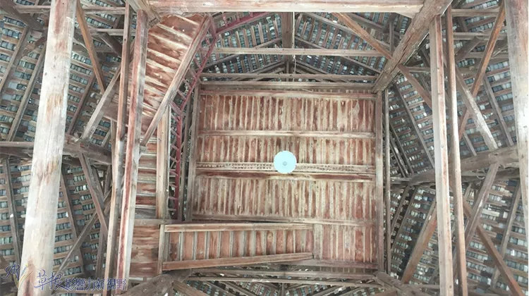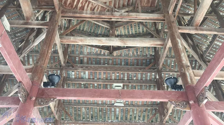 鼓樓為全木頭打造,此為抬頭仰望的照片,可見樓梯可爬上去