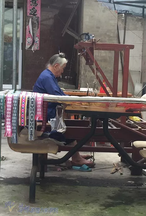 民居內(nèi)有老婦以傳統(tǒng)織布機(jī)來編織侗族服飾