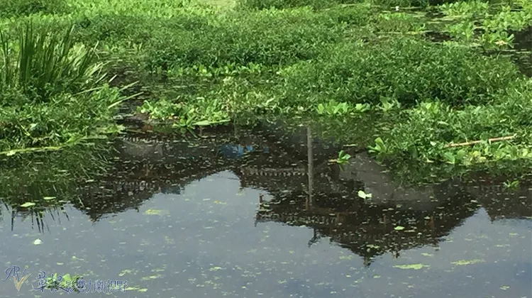 從池塘所見的侗族民居倒影