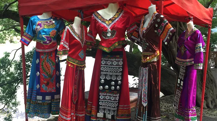 榕樹旁擺設(shè)侗族服賜可供拍照