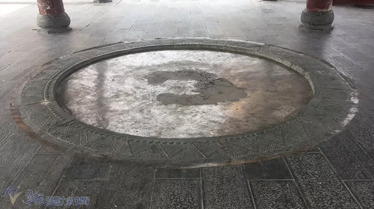 鼓樓的地板為石板,中間為一個(gè)打磨過的圓形光滑石面