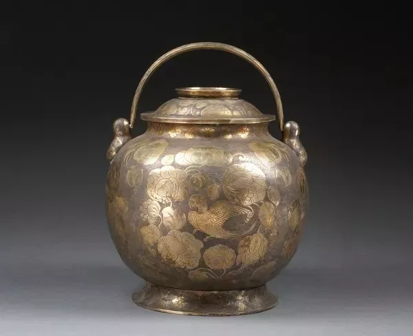 鎏金鸚鵡紋提梁銀罐