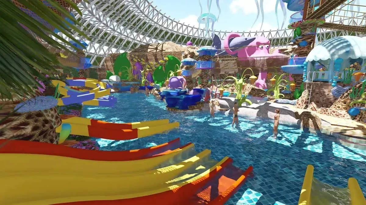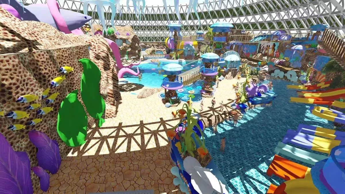 項(xiàng)目主要包括水上王國、發(fā)現(xiàn)王國以及水上探險(xiǎn)等三大主題片區(qū)??傉嫉孛娣e達(dá)到70萬平方米,約1000畝,建筑面積6萬平方米。