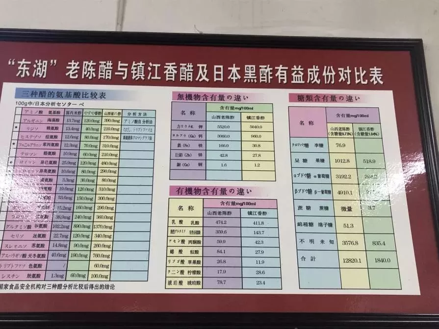 一號(hào),二號(hào)歷史陳列館和榮譽(yù)館中,全面展示了美和居老醯坊與山西老陳醋的發(fā)展進(jìn)程。從醋的起源,到六百年前明洪武元年(1368年),“美和居”醯坊始創(chuàng)熏蒸法釀造“老陳醋”,從改革開(kāi)放以來(lái)的公私合營(yíng),再到新世紀(jì)以來(lái)東湖醋園帶領(lǐng)“老陳醋”走向現(xiàn)代化,走向全世界……正因?yàn)橛幸淮慌鷨渭儗W?,自尊自信,有職業(yè)精神,不倦奮斗的山西人,老陳醋的大旗才能六百多年烈烈高揚(yáng),屹立不倒。