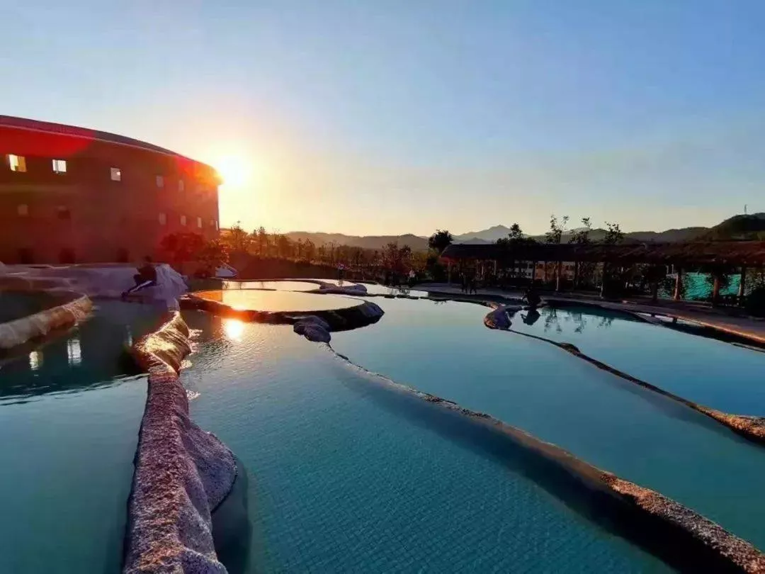 康樂圍酒店是靈石溫泉中心單體最大的建筑,依照客家方形圍屋風(fēng)格而建造,極地風(fēng)光SPA,泡池為最大特色體驗!安置好行李后,大家自由前往靈石溫泉區(qū)