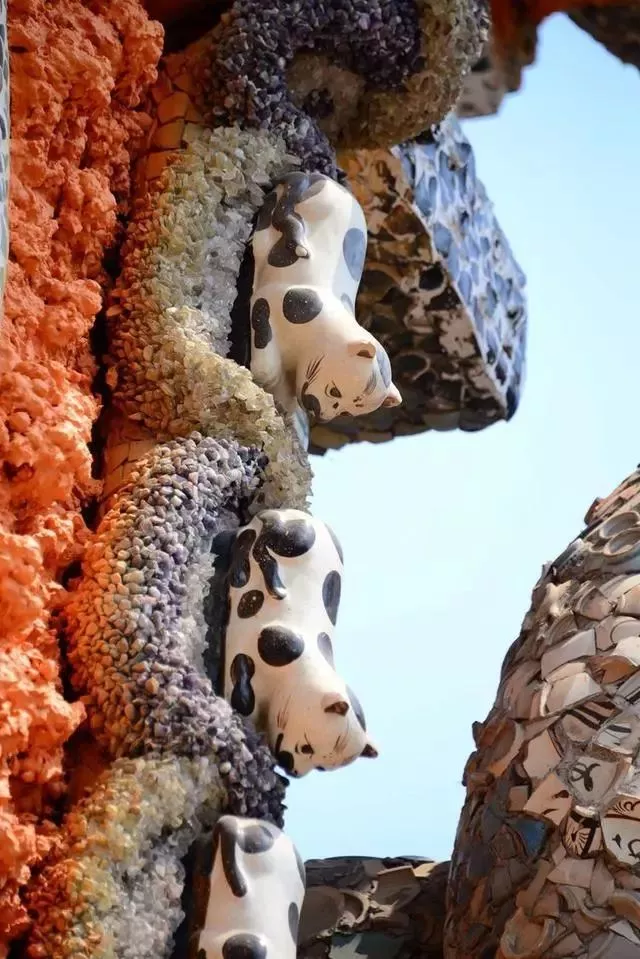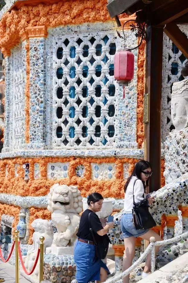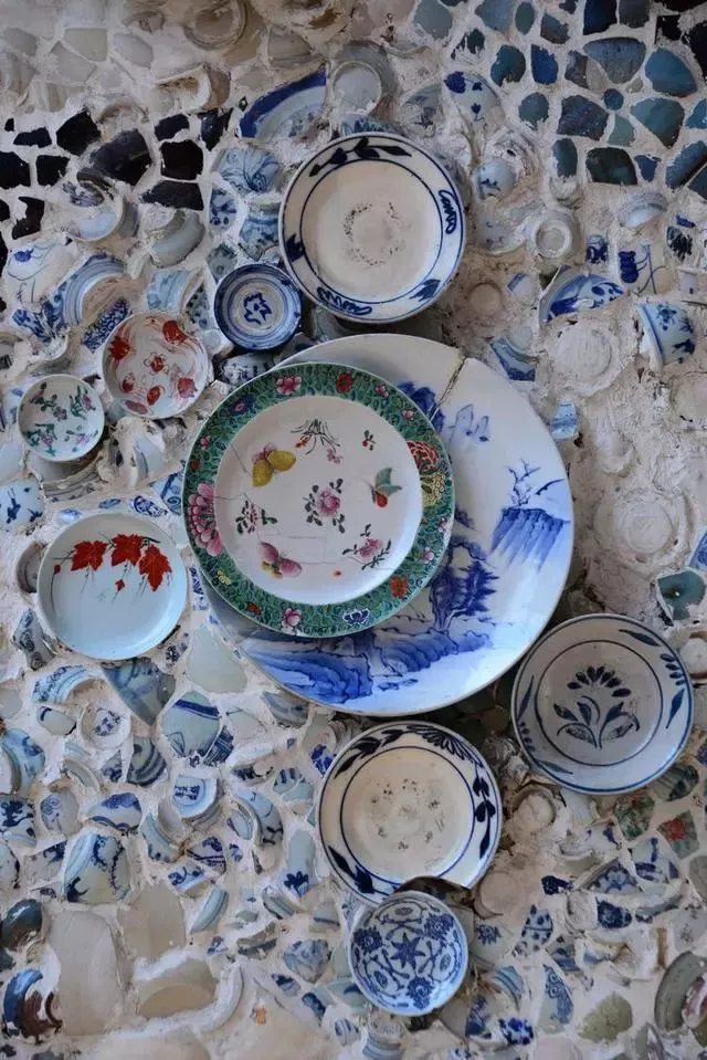瓷房子使用了四千多件古瓷器、四百多件漢白玉石雕、7億多片古瓷片、13000多個(gè)古瓷盤和古瓷碗、300多個(gè)瓷貓枕、300多個(gè)漢白玉唐宋石獅子、300多尊歷代石雕造像、20多噸水晶石瑪瑙。把一座法式洋樓裝飾成一座價(jià)值連城的瓷房。這7億多塊瓷片涵蓋了各個(gè)歷史時(shí)期,有晉代青瓷,唐三彩,宋代鈞瓷、龍泉瓷,元明青花,清代紛彩等,幾乎官窯、民窯的所有門類都可以在墻上找到,突出中國文化,感受中國瓷器的魅力。??