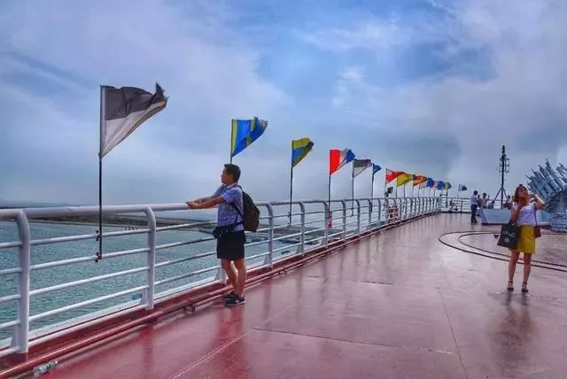 2000年5月“基輔”號航母告別了俄羅斯的維佳耶夫軍港啟程,由上海救撈局“德意”號拖輪拖離,途經(jīng)大西洋,繞好望角,穿馬六甲海峽進(jìn)入中國南海東海、黃海駛?cè)氩?a href='/haiwan/' target=_blank>海灣。于2000年8月29日順利抵達(dá)天津新港南疆碼頭,歷時(shí)102天,航程16850海里,完成了航運(yùn)史上的一次壯舉。在國務(wù)院和天津市政府的支持下,國家外經(jīng)商貿(mào)易部于2001年1月為航母辦理合法手續(xù),將基輔號航空母艦改變?yōu)橛^光用途。