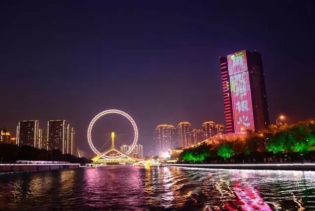 初到津門,海河如一條璀璨的漂帶,飄浮在這不夜之城,海河的風(fēng)溫潤細(xì)膩,天津火車站鐘樓、解放橋等近代建筑天津之眼等現(xiàn)代元素,如此融洽的展示在都市的夜幕中…