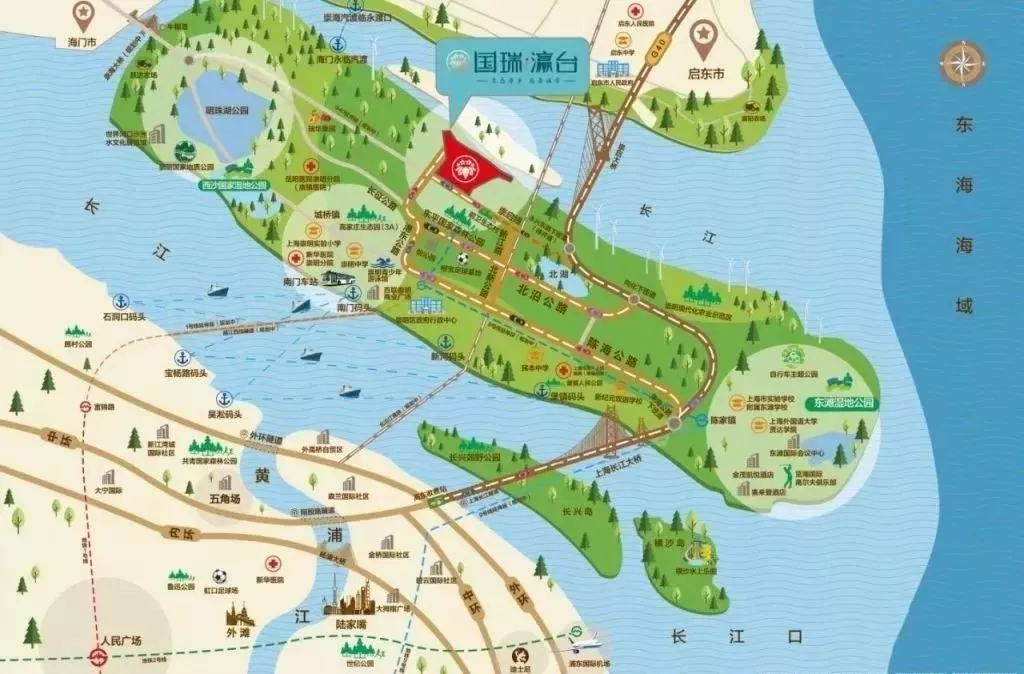 國瑞瀛臺位于崇明島不屬于上海約4.75%的啟隆鄉(xiāng)版塊,行政屬于江蘇啟東,不受上海購房政策影響。項(xiàng)目總占地約1800畝(1500多畝建設(shè)用地,200多畝農(nóng)用地)、總建筑面積約120萬㎡、 容積率1.0、綠化率32%(不含200畝家莊),由洋房、別墅和商業(yè)組成;