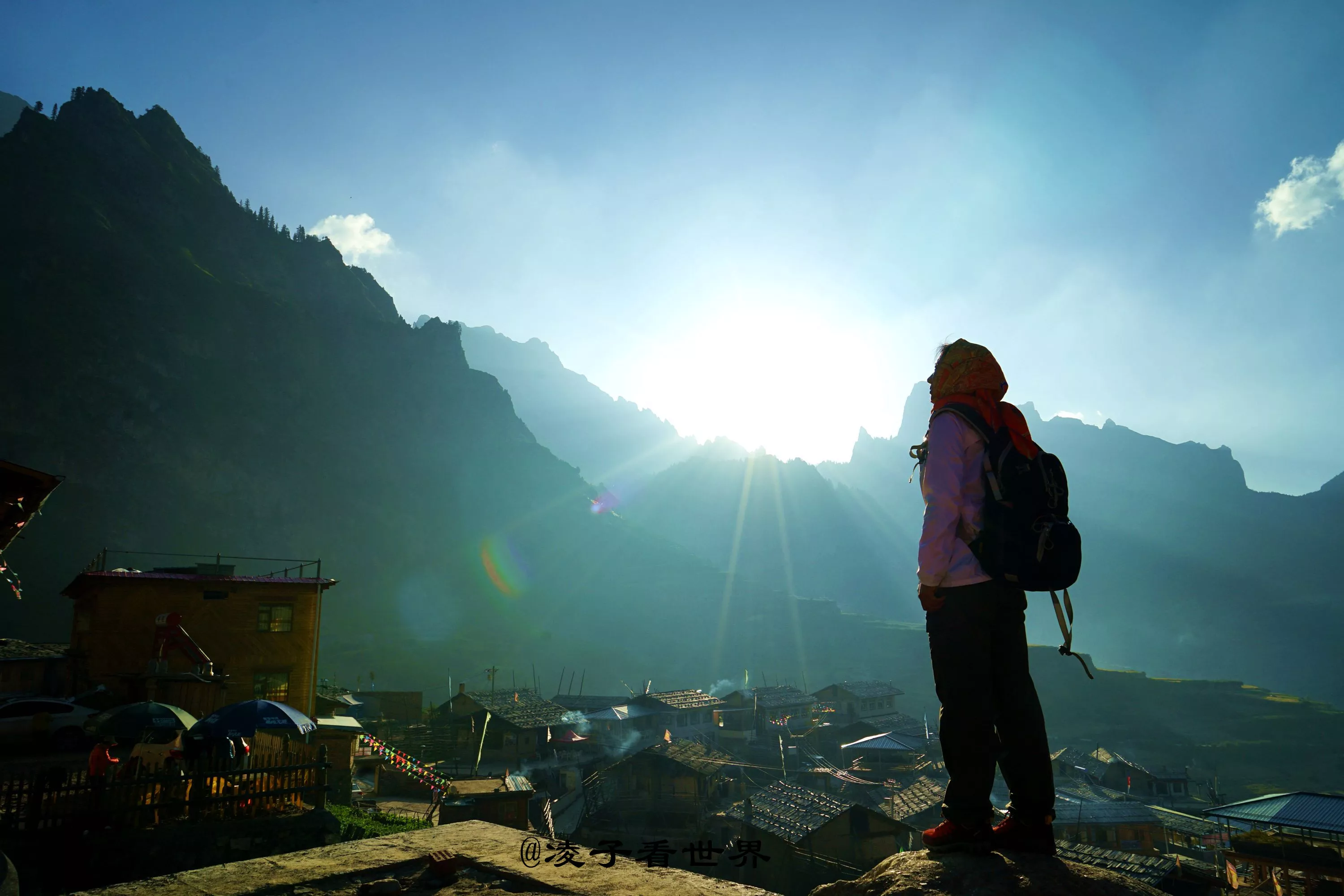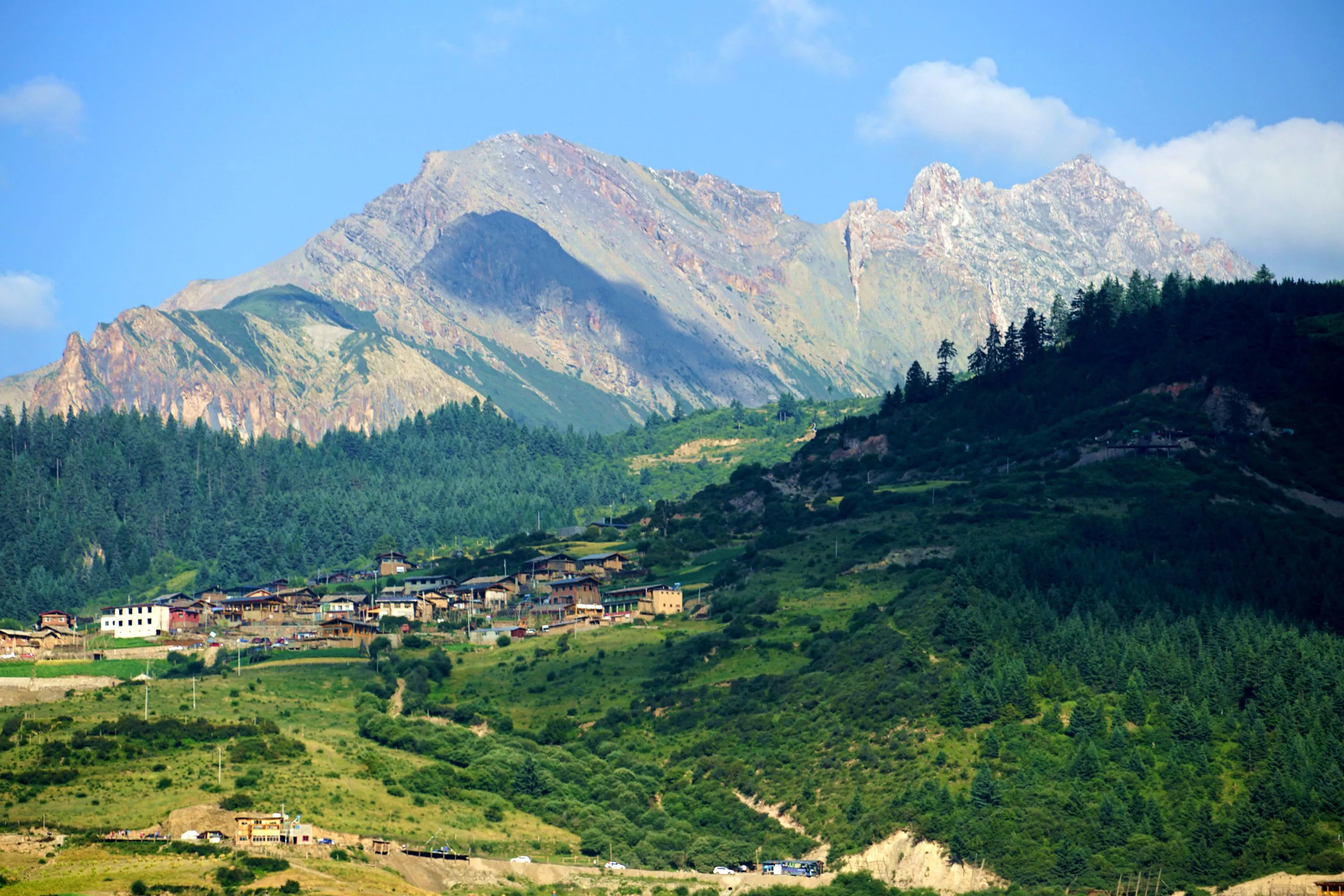 這一次的甘南之行,除了領(lǐng)略甘南的高原藍(lán),高原紅,高山草原。最讓我驚艷的當(dāng)屬這迭部高原“石頭城”。說它是座城,是因?yàn)樗拿姝h(huán)山,還有這特殊的地理位置,四面的山峰都是陡峭的巖峰,宛如高俊渾厚、堅(jiān)不可摧的城墻。將扎尕那四村一寺牢牢圍在城中山上的蒼松翠柏,郁郁蔥蔥,被圍繞在山坳坡地中的藏族村落,層層疊疊,蜿蜒而上。