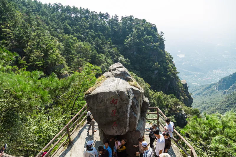1、第三峰最險(xiǎn),峰頂有“日近云低”、“俯視大千”等石刻。