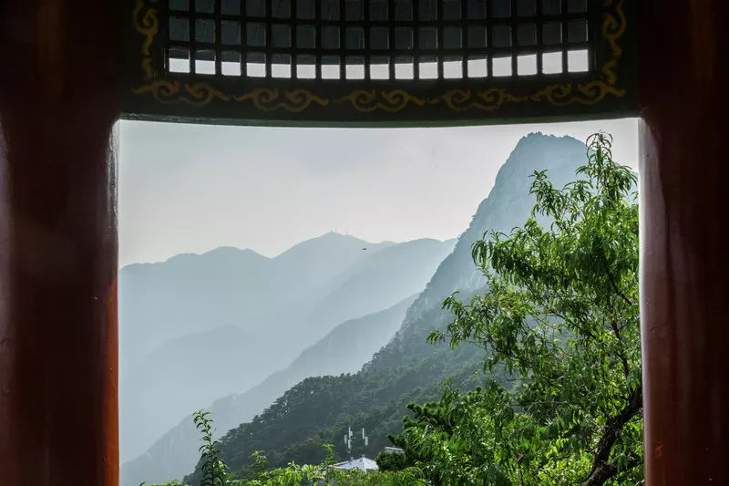 2、第四峰最高,峰頂云松姿態(tài)如彎曲的虬龍。