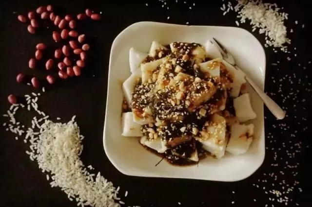 簸箕炊口感軟糯,但卻不粘,一口咬下去干脆利落,上面鋪滿(mǎn)了蘿卜仔和芝麻,再搭配自制的甜醬和豉油,既甜也咸。