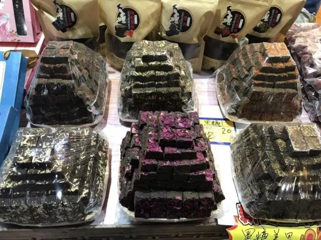 黑糖:屯溪老街的黑糖有很多種類。有枸杞黑糖,桂花黑糖,鮮花黑糖,茉莉花黑糖等。老街隨處可見售賣紅糖的攤子,黑糖擺放不一,堆堆疊在一起。不僅可以直接沖水喝,也是菜肴的調(diào)味品哦。