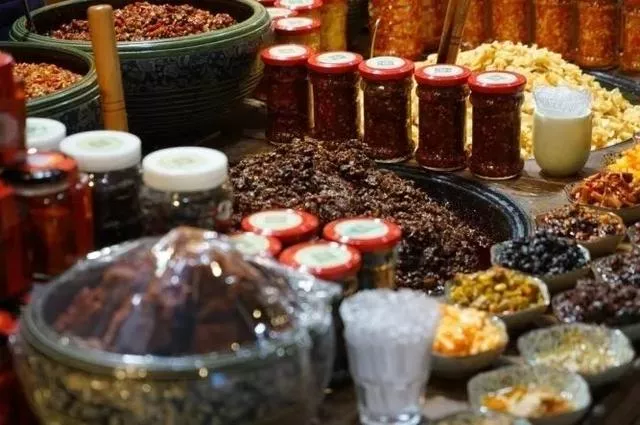 醬菜:在街頭看到的咸菜鋪?zhàn)硬皇且话愕亩?。一整?a href='/techan/12443' target=_blank>腌菜咸菜,放得整整齊齊,有二三十個(gè)品種,可以免費(fèi)試吃。