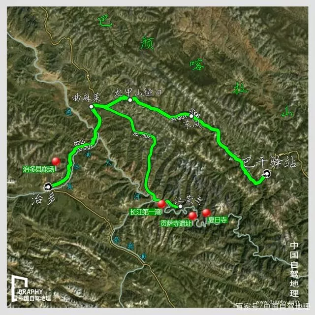 第二天線路:治多 → 90.1km → 貢薩寺遺址 → 7.5km → 夏日寺→ 61.4km → 萬里長江第一灣 → 64.2km → 治多