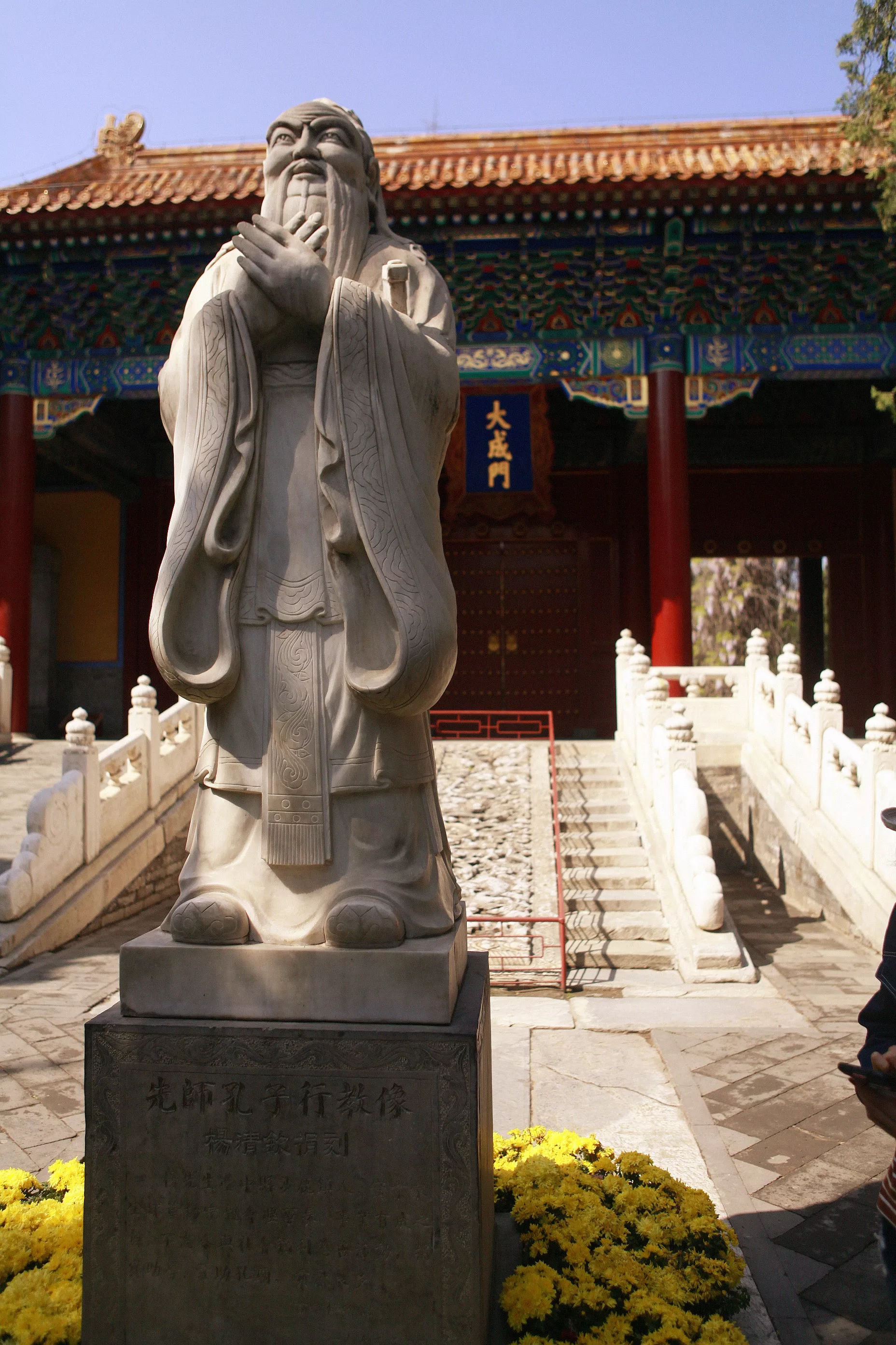 值得重點提一句的就是:大成門前的孔子雕像;孔子雙眼深邃的看著遠方,五縷長髯下垂,跟古時候的一般讀書老頭沒啥區(qū)別。左手在外右手在內(nèi),雙手姿態(tài)酷似一個“人”字。