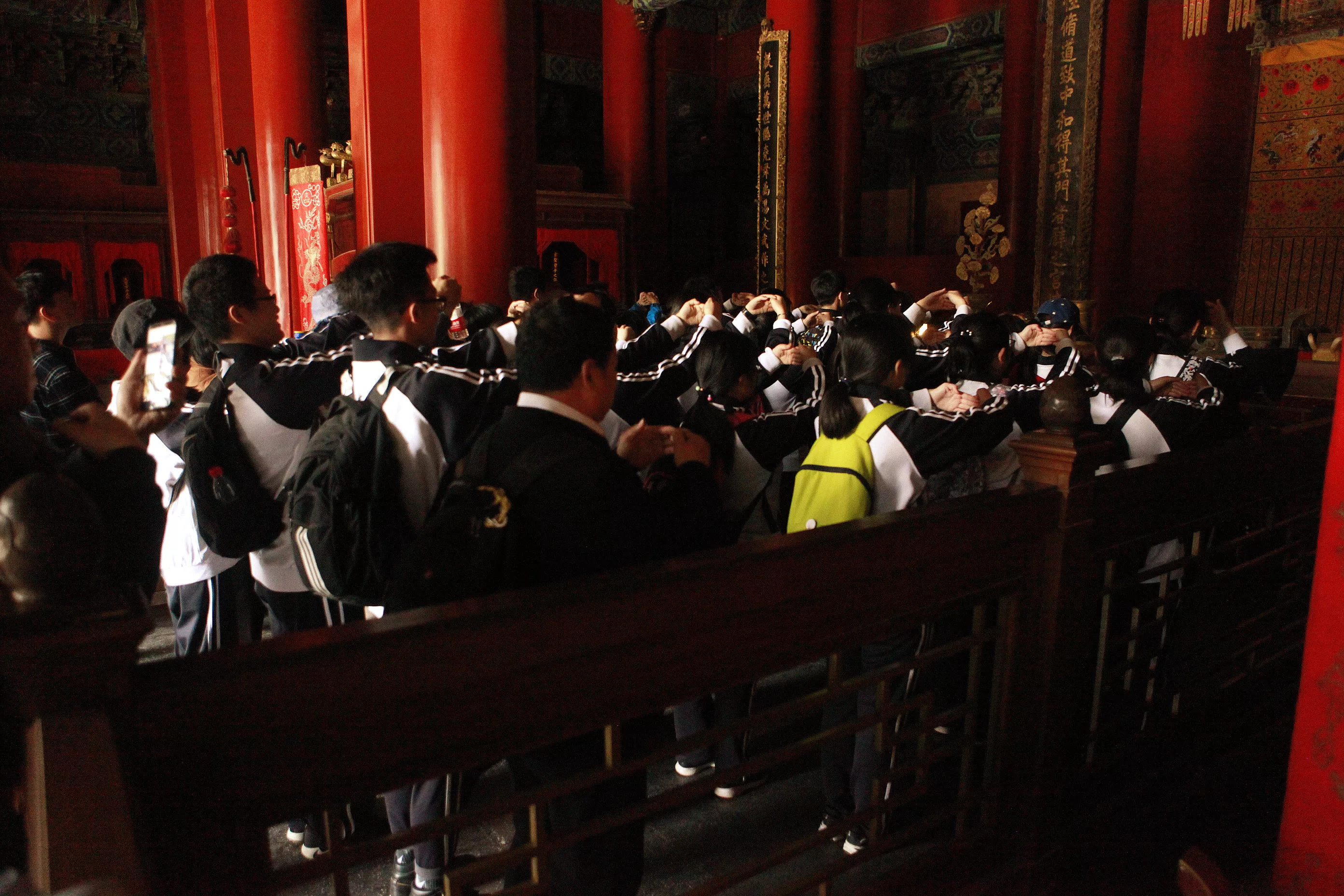 孔廟前來參觀學(xué)習(xí)的更多的是學(xué)生,作為人生教育的一個部分,尊師重禮是很重要的部分
