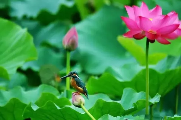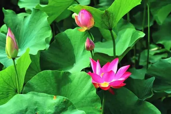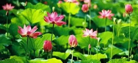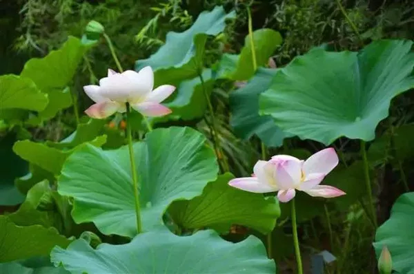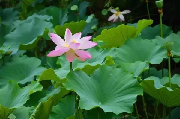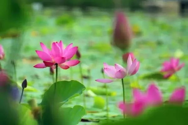 粉色的、白色的、含苞待放的、已經(jīng)盛開的,在滿池蓮葉中星星點綴,驅(qū)散了這幾天的燥熱。