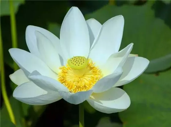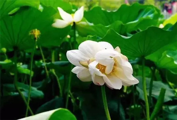 這種白色的荷花好漂釀,中間金色的花蕊在陽光照射下好像在閃光一樣。