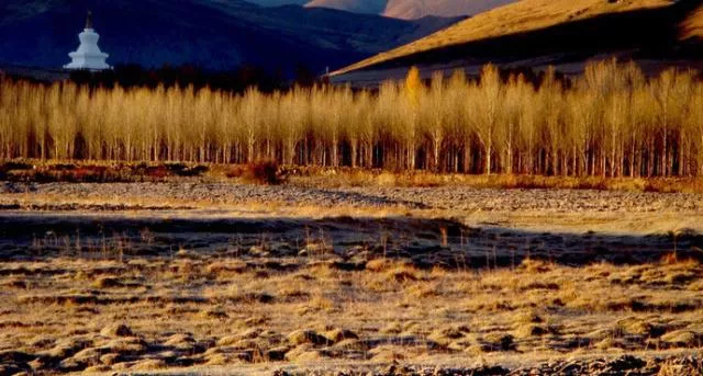 簡介:稻城城縣城周圍的河灘上人工種植了萬畝胡楊林(去日瓦鄉(xiāng)路上可見)。 。肥沃的良田和清澈的河流間散布著一棵棵美麗的白楊,在金秋時(shí)節(jié),白楊林一片金黃,掩映首藍(lán)天白云,使這里成為具有稻城特色的美麗景色之一。