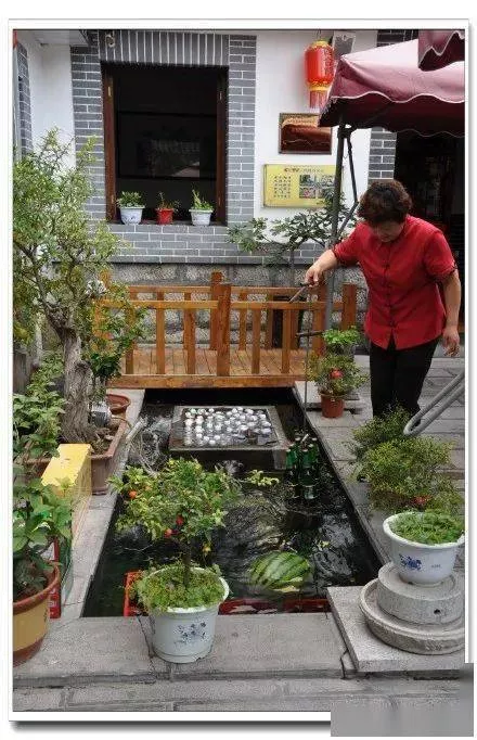 一步一戶,一戶一泉,一泉一景。走進僻靜的小巷,縱橫阡陌,給我驚喜的是潔凈小巷里掛滿了喜慶的大紅燈籠,這些獨門獨戶的小院是對舊民居進行了翻修,不僅保持了原有的布局,還改造成了招待四面八方客人的魯菜餐館,門口的牌匾上冠以“曲水亭X號”,每個院落都泉眼噴涌,且有名有姓,歷史悠久,記錄著每一座院落的春夏秋冬。我們隨意走進一家菜館,院內的服務員非常熱情,我們說不吃飯看看可以嗎?得到的回答是隨便看,而且還引領我們看墻上詳細的說明。這家的泉水在曲水亭街上是名門望族,名曰“仁義泉”,一東一西,仁義相望,清泉汩汩,有意思的是店家把泉水池子當成了天然冰箱,將賓客們即要飲食的啤酒飲料和西瓜浸泡在泉水里,自然冷藏,自成泉城一景。當我們要離開時,服務員特地為我們表演一番,把一盒啤酒從冰涼的泉水里提起,看得我們十分驚艷。出門的時候又看到一個送菜的伙計笑瞇瞇的,端著一盤菜從胡同深處的廚房走來,立刻為幽深的胡同增添了一股煙火之氣。